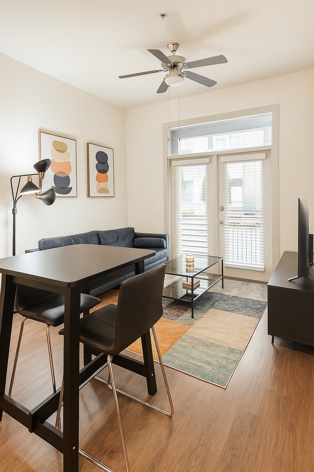 Less than two miles from Downtown Dallas, the Victory Park neighborhood sits between the Design District and Uptown. Our apartment is designed to help you do your best thinking. Featuring bright expansive spaces and complimentary WIFI, you’ll have everything you need to be your most productive. Relax & Rejuvenate When your day is done, in a space that is created for unwinding in every way. 24/7 Suite Support If you have any questions or concerns throughout your stay.