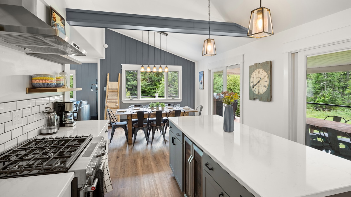 Bienvenido a The Summit House, una cabaña con estructura de madera completamente renovada a menos de 1 milla del centro de Stowe. Despiértate con vistas a la luz de la mañana que se proyecta a través del bosque desde tu dormitorio con paredes de cristal. Relájate después de un día explorando las montañas en la enorme ducha de efecto lluvia estilo spa. Relájate después de cenar alrededor de la moderna chimenea de leña mientras ves tus programas favoritos en el televisor de 50 pulgadas. No es solo un alquiler, es una experiencia. La última incorporación a la colección OM Home Residences.