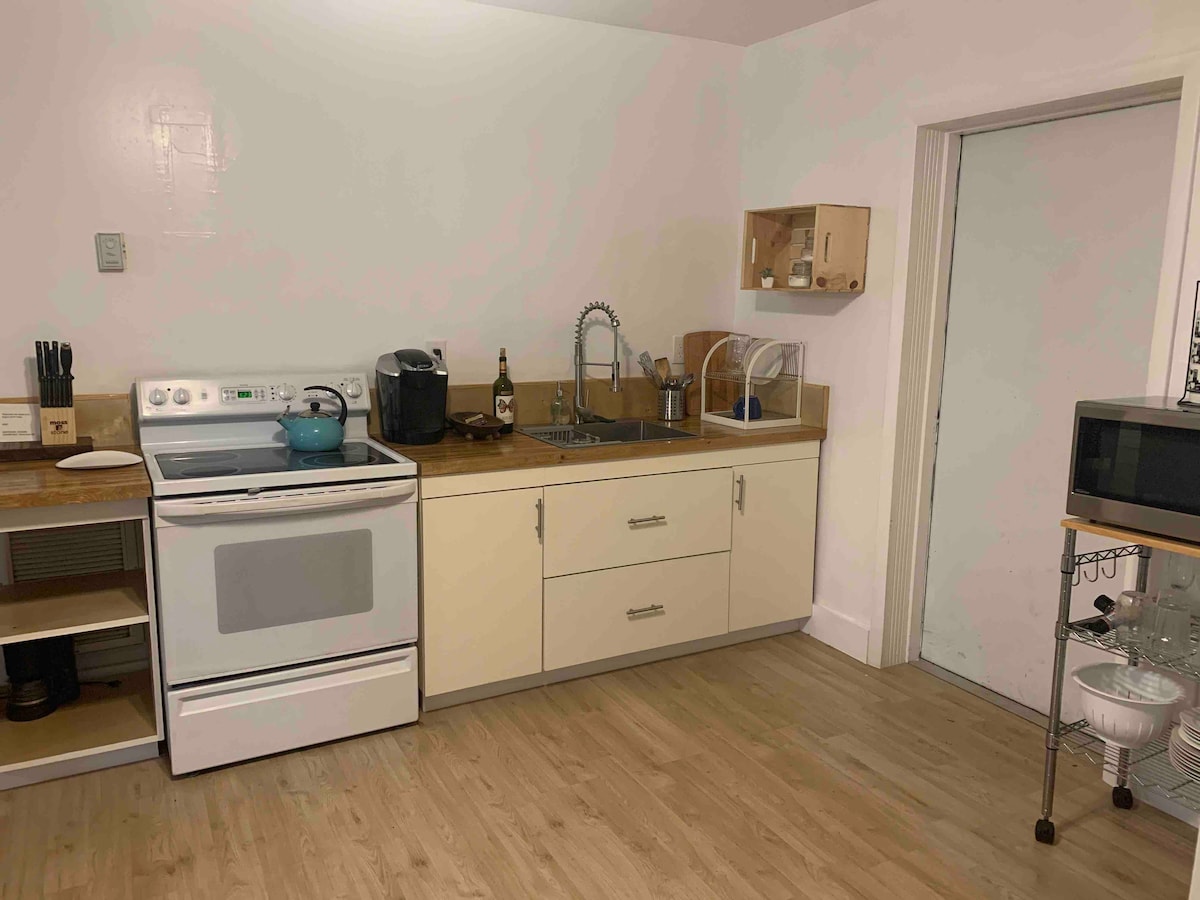 Queremos que te sientas como en casa en nuestro luminoso y limpio departamento estudio. La cocina incluye electrodomésticos de tamaño completo con casi todo lo que necesitás para preparar tus comidas favoritas. La entrada está detrás de una puerta de privacidad en la parte trasera de la casa. Estacionamiento GRATUITO fácil fuera de la calle para 1 vehículo a pocos pasos de la entrada. Los huéspedes hacen el check-in con un código o una cerradura con teclado.
