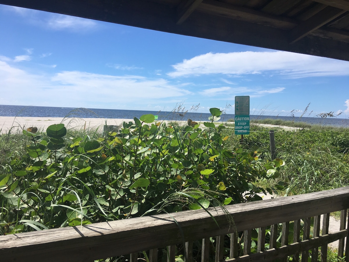 Esta casa de vacaciones actualizada de 1400 pies cuadrados con techos abovedados es un lugar fantástico para relajarse después de un día de playa. (¡Tu acceso privado a la playa está justo al otro lado de la calle!) Amplia suite principal y dormitorio de invitados con amplia terraza. Cocina/comedor totalmente equipados con lanai cerrado contiguo. Completa con todas las comodidades de un hogar. Consulta «otros detalles a tener en cuenta» para obtener una descripción de tu acceso privado a la playa para disfrutar de días soleados y magníficas puestas de sol sobre el golfo de México.