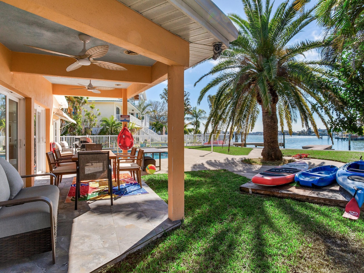 - Frente al mar estilo resort. - Independiente. - Jacuzzi. - Vistas al amanecer/atardecer en el muelle. - Kayaks gratuitos. - Internet/cable de YouTube. - Televisor inteligente de 65 pulgadas. - Amplio dormitorio con cama tamaño king, vestidor y TV de pantalla plana. - Lavadora y secadora en el alojamiento. - Espacio de trabajo designado. - Se admiten mascotas. - Patio privado vallado. - Aparcamiento gratuito para 2 coches/barcos. - Ubicación céntrica (playas, restaurantes, Tampa, St. Pete's, Safety Harbor, Dunedin). - A 11 minutos de la sala de eventos Ruth Eckerd. - Limpieza impecable. - Zona de café. - Comedor.