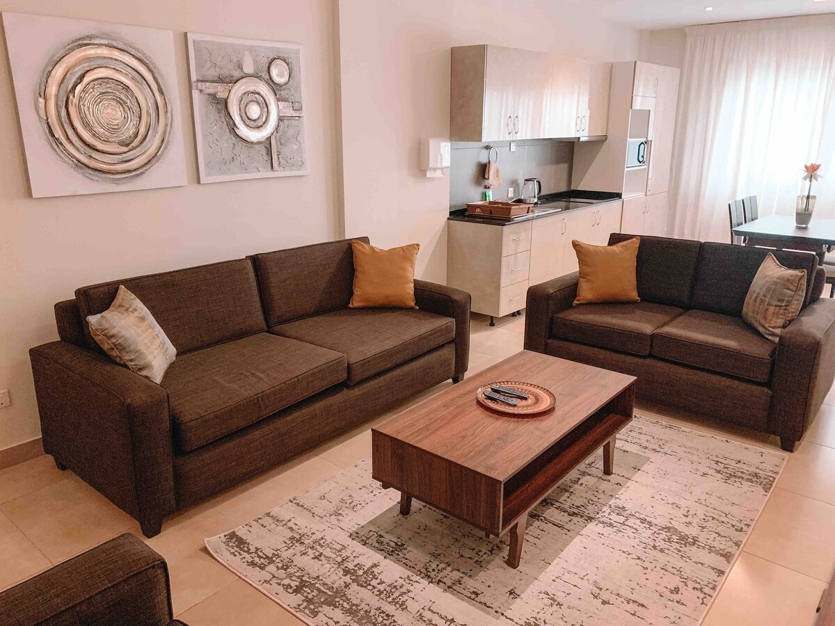Nuestros apartamentos totalmente amueblados cuentan con varios dormitorios, wifi gratuito, aparcamiento gratuito, TV vía satélite gratuita, servicios para huéspedes las 24 horas y seguridad, una cocina totalmente equipada, toallas, sábanas y mucho más. Servicios de limpieza y lavandería disponibles bajo petición.