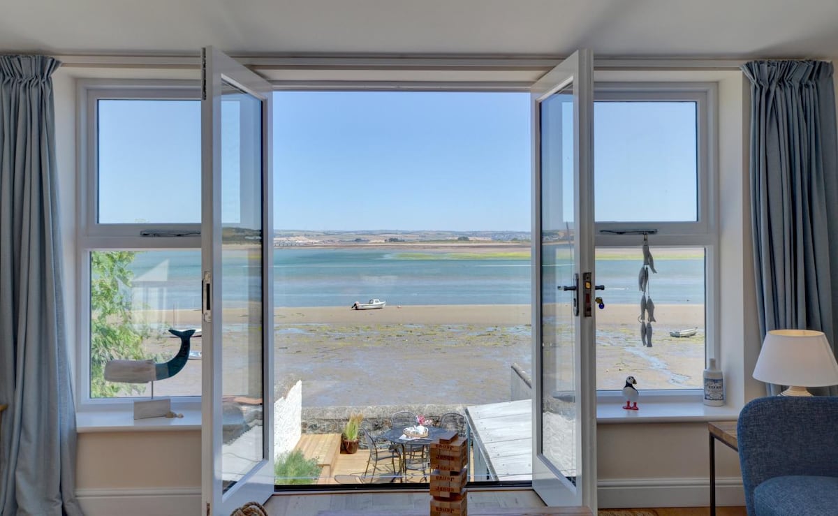 Welcome to our coastal retreat, West Quay House has got everything, spacious living space, central location, top quality fittings and furnishings, and a breathtaking view. West Quay House offers stunning uninterrupted views across the ever changing seascape of the rivers Taw and Torridge estuary as they meet the Atlantic. The view is dynamic as the tide rises and falls bringing the sea to within 2m of the house at high tide and revealing the estuary rocks and sands at low tide.