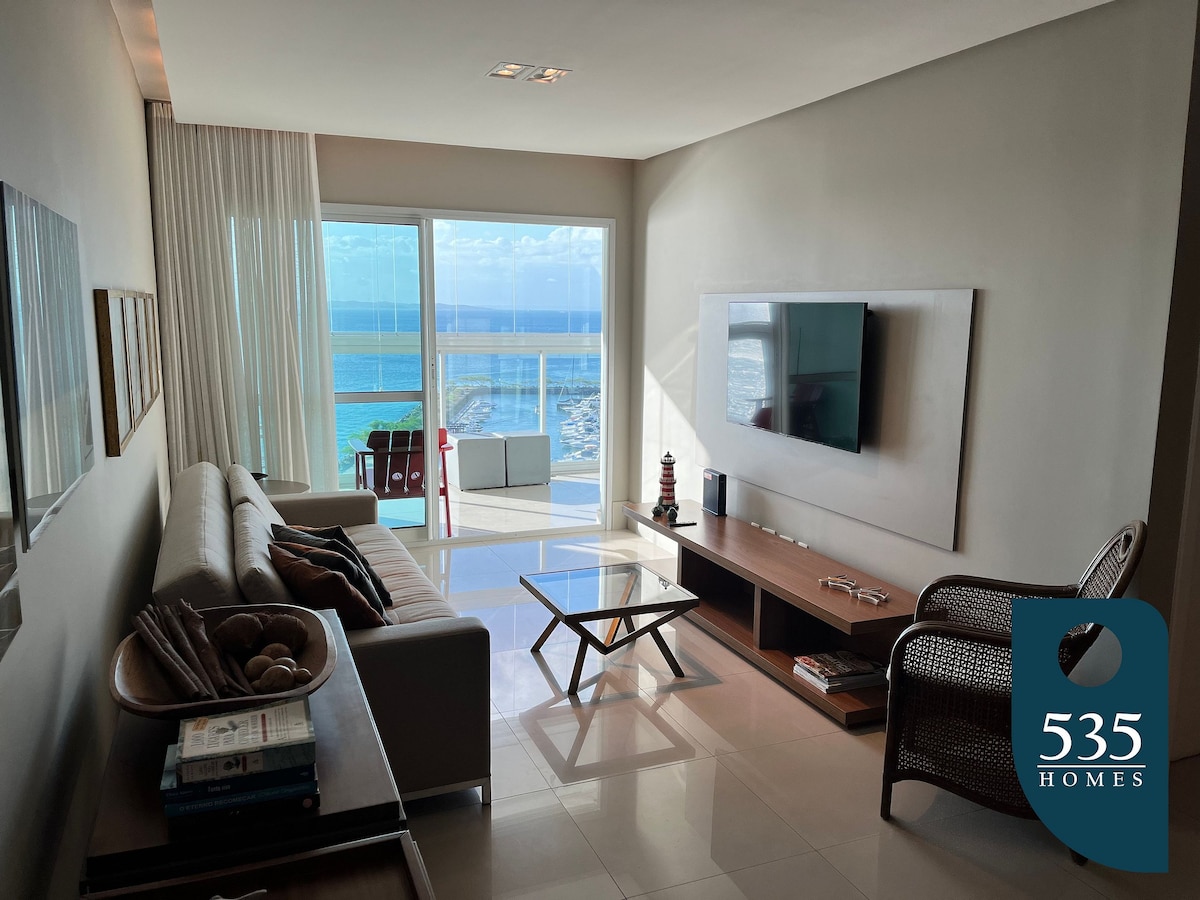 Lujoso Apartamento Frente al Mar, Nascente Maravilloso apartamento de 95m2 con vista completa al mar (apartamento frente al mar) y fue completamente diseñado y amueblado con atención al detalle para el máximo confort, ofreciendo la mejor experiencia posible. Cuenta con 2 suites completas y 1 Dormitorio-Sala (HomeCinema) con 2 sofás cama extragrandes equipados con SmartTV vista mar, balcón frente mar con mesa y sofá, el lujoso apartamento recibe cómodamente 6 huéspedes. ¡Perfecto para familias!