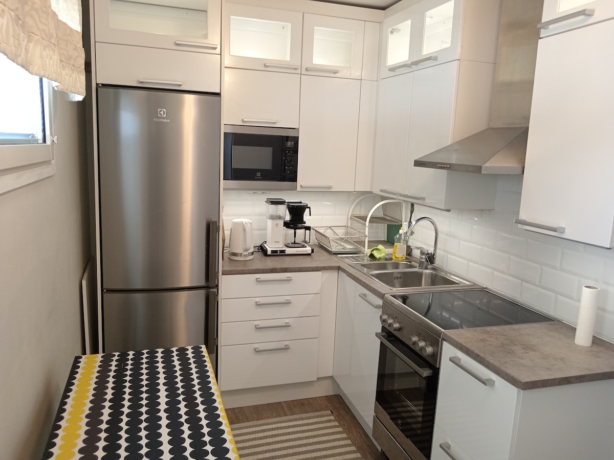 La propiedad se encuentra en una zona residencial tranquila, en el patio de una casa unifamiliar, a unos 15 km del centro de Oulu. El apartamento está en perfecto estado, tiene capacidad para dos personas y un colchón inflable para una tercera, si es necesario. En la segunda planta hay un dormitorio con cama de matrimonio. Otros aspectos destacables: Hay una carpeta en la mesa del pasillo con algunas instrucciones para el inquilino con respecto al apartamento, asegúrate de leerla, gracias.