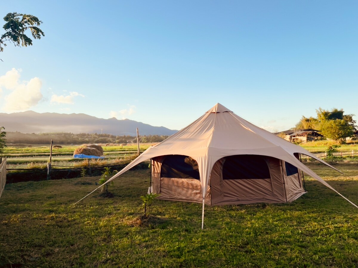 The place is located on the hill top. Stay comfortably in a tent with nature and great view of Doi Chiang Dao and rice field. Great base for your activities in the area. Clean mattress, bedsheet and blanket are provided. Shared toilet and bathroom.