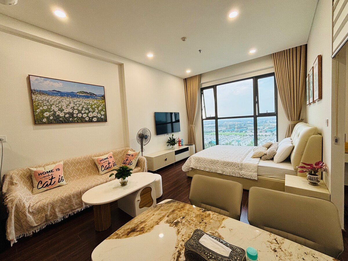 Chào mừng bạn đến với căn hộ Masteri studio cao cấp, nơi bạn có thể thư giãn với tầm nhìn hồ nước uốn lượn và toàn cảnh thành phố. Căn hộ đầy đủ: máy sấy quần áo, điều hoà 2 chiều, máy giặt, nước nóng, tivi, tủ lạnh, bếp và đồ dùng nấu ăn. Tòa nhà có siêu thị, ngân hàng, quán ăn Hà Nội đặc trưng ngay bên dưới. Chỉ vài bước là tới trung tâm mua sắm, rạp chiếu phim, công viên và biển nhân tạo 24ha! Căn hộ luôn được giữ gìn sạch sẽ và chăm chút kỹ lưỡng – bạn chỉ việc xách vali đến và tận hưởng!