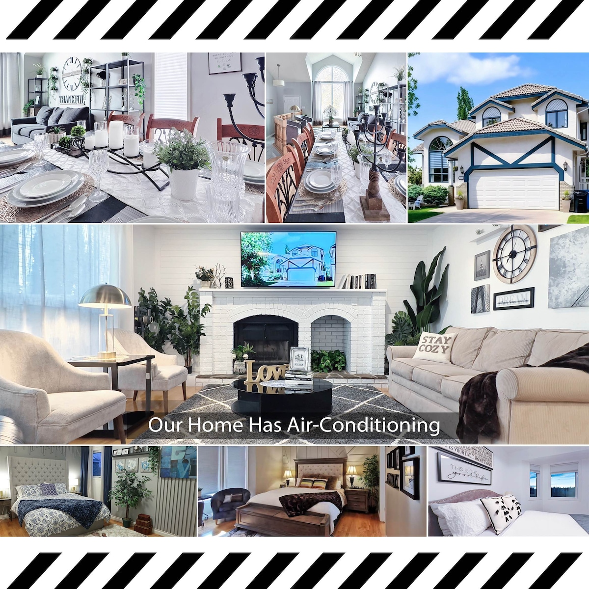 Welcome to beautiful and spacious Ravine Retreat House: - 4000+sqf , walk out to breathtaking ravine, Mountain View - Pool table entertainment - Free parking, Free bath and kitchen essentials, Free WiFi - Fully stocked kitchen; BBQ at balcony - Costco, superstores nearby - City centre, YYC airport 15 mins - Quick access to Banff - 6 bdrm 3.5 bath, - 10 beds: 7 twin +2 queen+1 king - A/C - Pet friendly (fee applied) - Perfect for multi-families, maximum 5 cars or 15 people at any time
