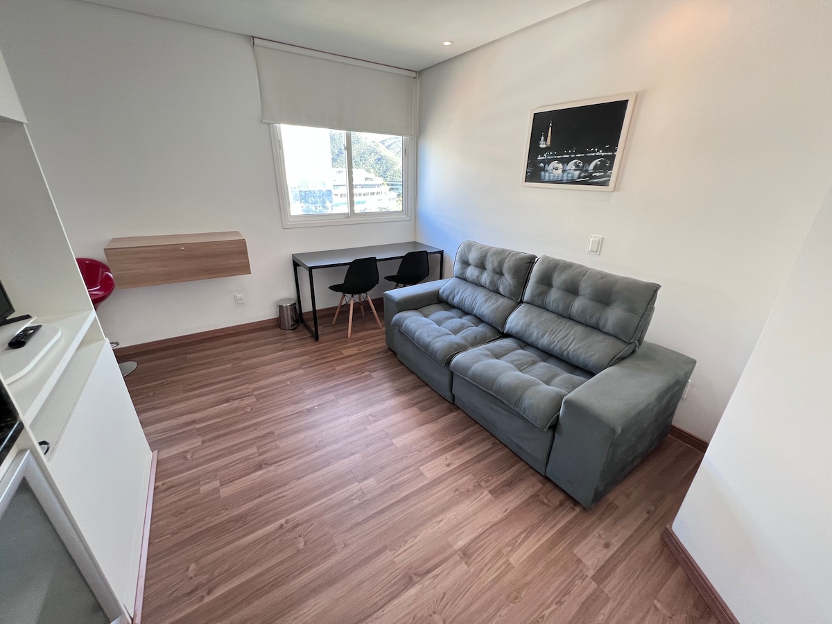 Localização, conforto e comodidades. Flat moderno e aconchegante na privilegiada região da Savassi, fácil acesso a supermercados, farmácias, bares e restaurantes. Recém-reformado, o apartamento conta com ar-condicionado, fechadura eletrônica, wi-fi, smart TV, mesa de trabalho, cozinha americada, lava e seca, cafeteira Nespresso, cama queen, enxoval padrão hotelaria e sofá-cama. Recepção 24h, vaga de garagem, academia, piscina, arrumação (seg a sáb) e espaço Coworking (cobrado à parte).