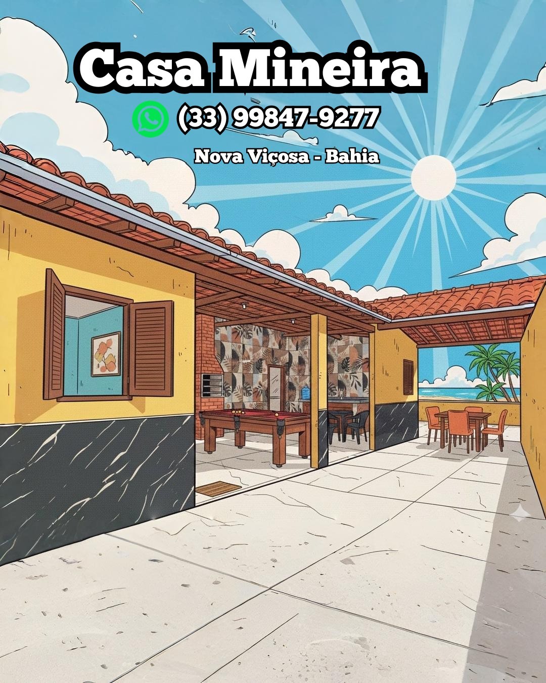 Esta acomodação elegante é perfeita para viagens em família em 2 quadras da Praia lugar comum 🏝️ Ambiente familiar e perto de padarias,supermercados e comércios de nova viçosa.. Não fornecemos roupas de cama!!! Fornecemos todos os utensílios para cozinha e área de churrasco como panelas,pratos talheres e copos