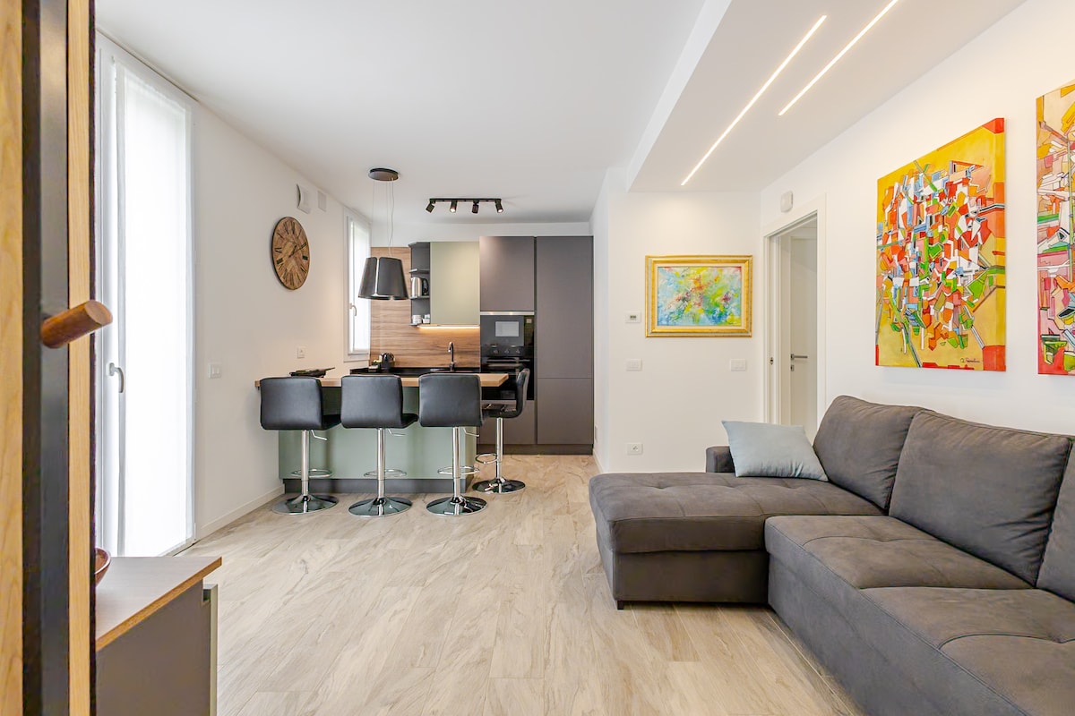 Elegante attico molto luminoso con generoso terrazzo privato, situato a 5 minuti a piedi dalla stazione L'appartamento è composto da: -ampio open space sala e cucina, soggiorno con divano letto, smart tv e angolo studio e WI-FI -ampia camera matrimoniale con letto king size, armadio a vista e cassaforte -bagno in marmo con doccia deluxe -ampio terrazzo con area relax Situato in zona strategica 5 minuti a piedi alla stazione ferroviaria per Milano e Malpensa. APPARTAMENTO COSTRUITO NEL 2023