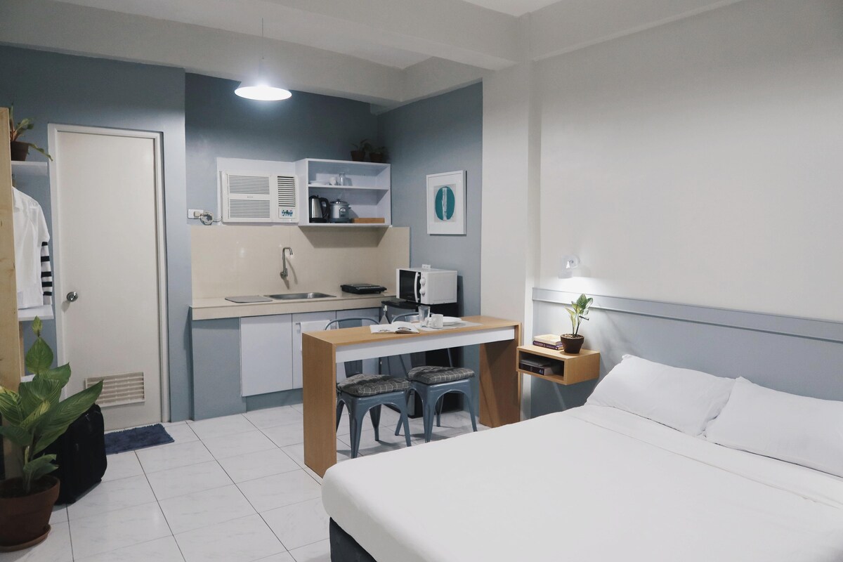 Apartamento tipo estudio recién reformado y totalmente amueblado por solo 1380 PHP por noche en el metro sur. Las comodidades incluyen: Wifi Mesa multiusos (para comer/oficina remota/oficina en casa) Televisión inteligente con Netflix y YouTube. Inodoro completo y ducha con calentador de agua Cocina americana con estufa de inducción, hervidor eléctrico, arrocera, microondas, nevera y utensilios básicos de cocina a petición Revitalizador de aire con aroma fresco y desinfectante.