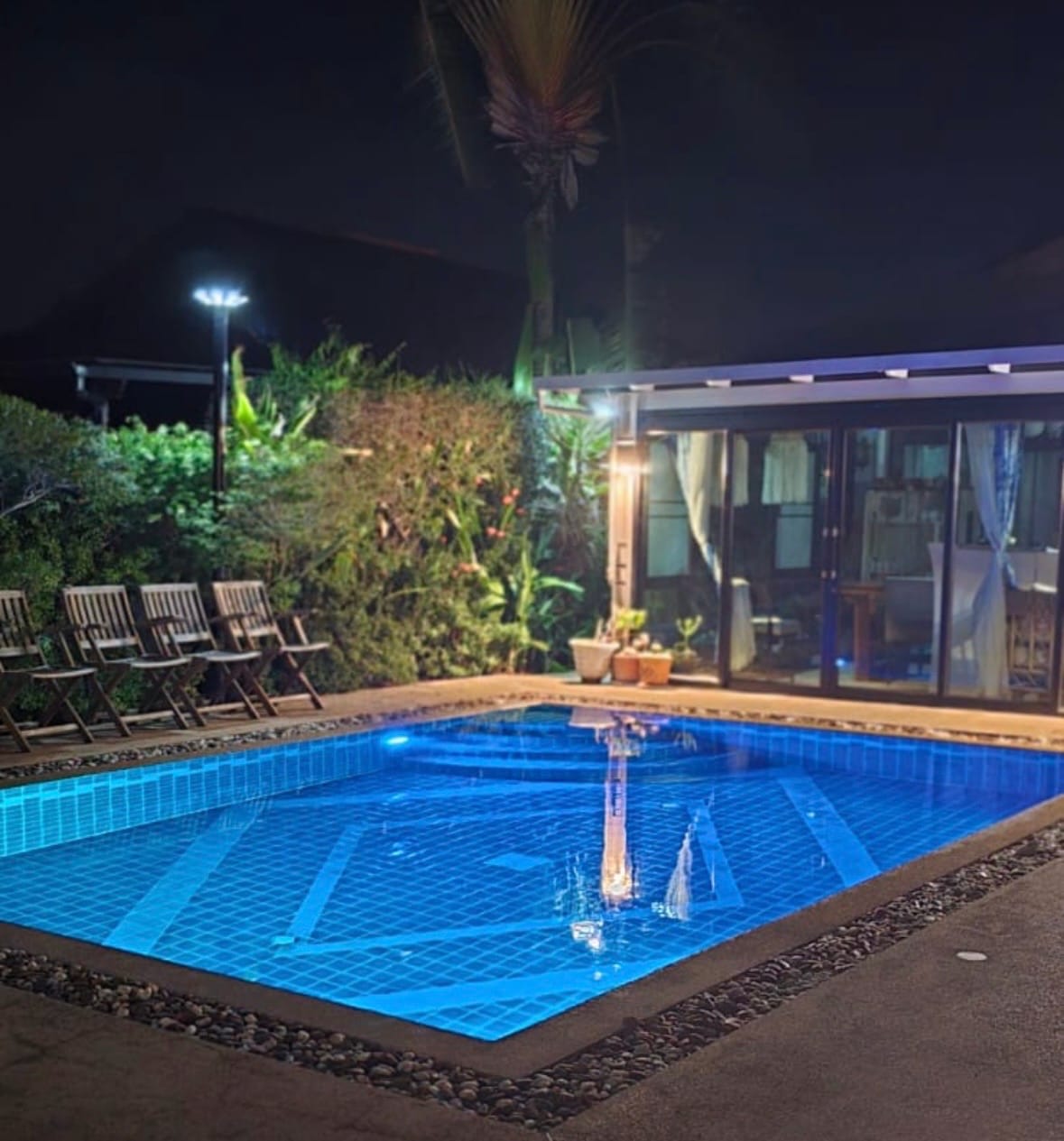 📍Welcome to this newly renovated pool villa with super big tropical garden🌳 📌Near Krabi Airport (3km away) 📌Free Krabi Airport shuttle (max 2rounds/booking) ✅fit up to 5 guests ✅2 car parks ✅pool can be used 24/7 ✅washing machine ✅fully equipped kitchen and dining table ✅2 bedrooms ✅3 bathrooms ✅living room with pool table, dart, smart TV and sofa 🔥Snacks,water and essential cooking condiments are provided! ✨Pool area and garden service 20mins/day in case of a long stay