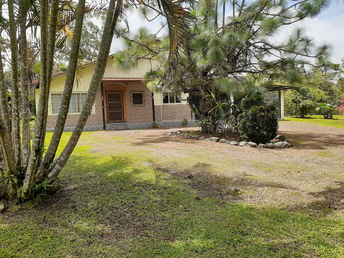 Esta casa, en 7 acres, tiene dos master suites, cada una con camas king size, con sus propios baños privados. Se encuentra a 10 minutos del Volcán de la carretera a Río Sereno. Con arroyos de montaña, hermosos pastos con caballos, senderos para caminatas y una piscina alimentada por manantiales. Tenemos un espectacular bosque nuboso antiguo, incluyendo aves, monos, ardillas, etc. Pero sobre todo... tranquilidad, privacidad y relajación. Lo prometemos... te encantará El Bosque Esmeralda.