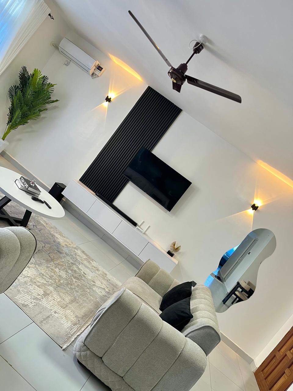 Presentamos ThirtyVII . —> Un elegante departamento de dos dormitorios en Nyali , Mombasa, justo en Mt Kenya Road . —> Está a 3 minutos a pie de la playa Voyager, muy cerca del centro comercial Promenade, Nyali Center , City Mall, supermercados y lugares de comida. —> Es espacioso, tranquilo y relajante. Todas las habitaciones están equipadas con unidades de aire acondicionado LG. Hay estacionamiento gratuito, wifi rápido, piscina y ascensor. Los toques modernos adornados con carpintería y el interior cuidadosamente elegido darán una sensación hogareña.