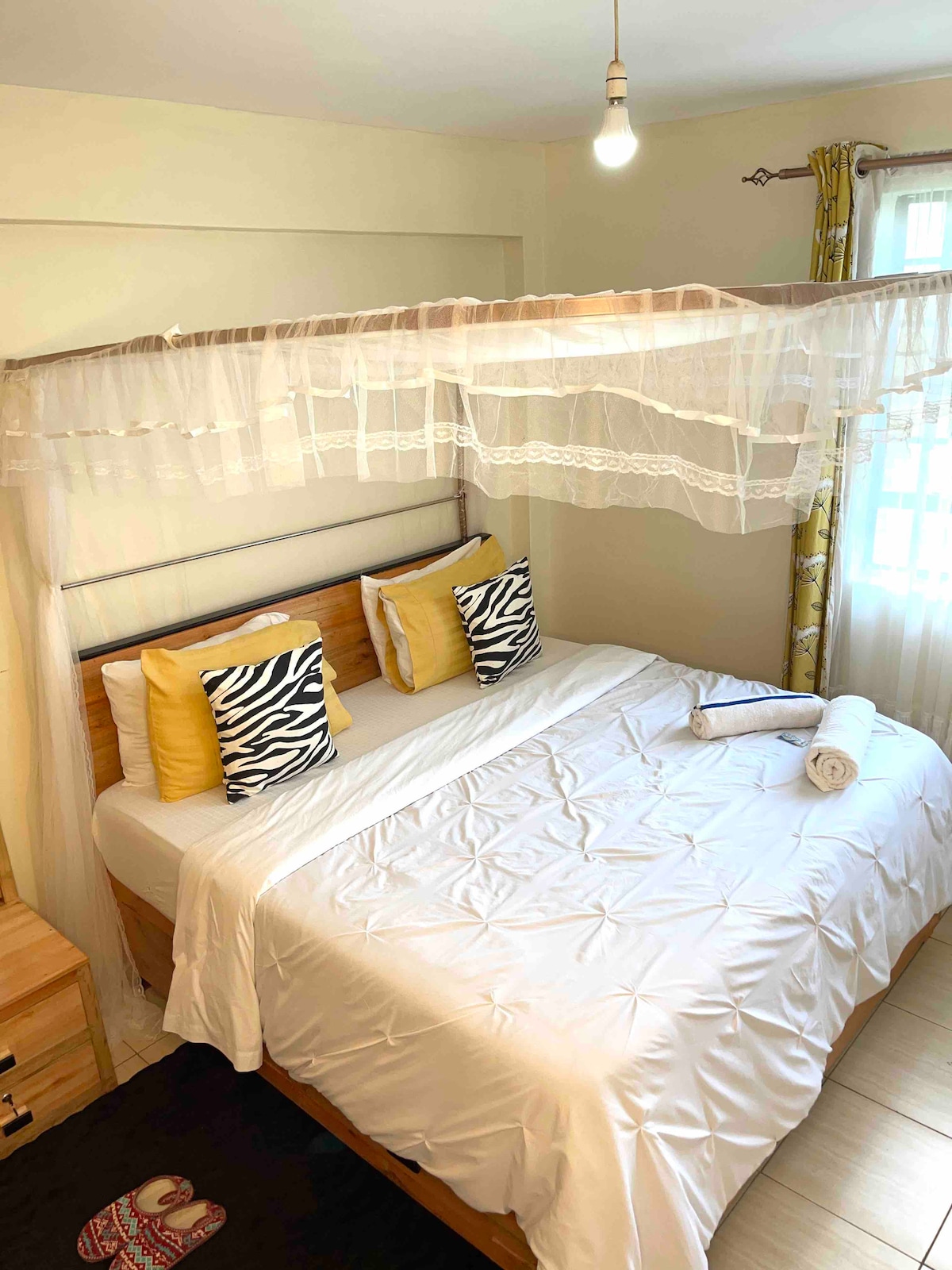 Relájate en este espacio tranquilo y elegante. Ofrece una estética acogedora y moderna con un toque de elegancia. La luz natural fluye generosamente a través de las cortinas blancas transparentes, creando un ambiente espacioso y relajado. Los tonos neutros en las paredes y los pisos crean un telón de fondo relajante, perfectamente equilibrado por el arte sutil y la iluminación de buen gusto. Este espacio es ideal para parejas, viajeros solitarios o amigos que buscan un retiro tranquilo y elegante con comodidad en su núcleo.