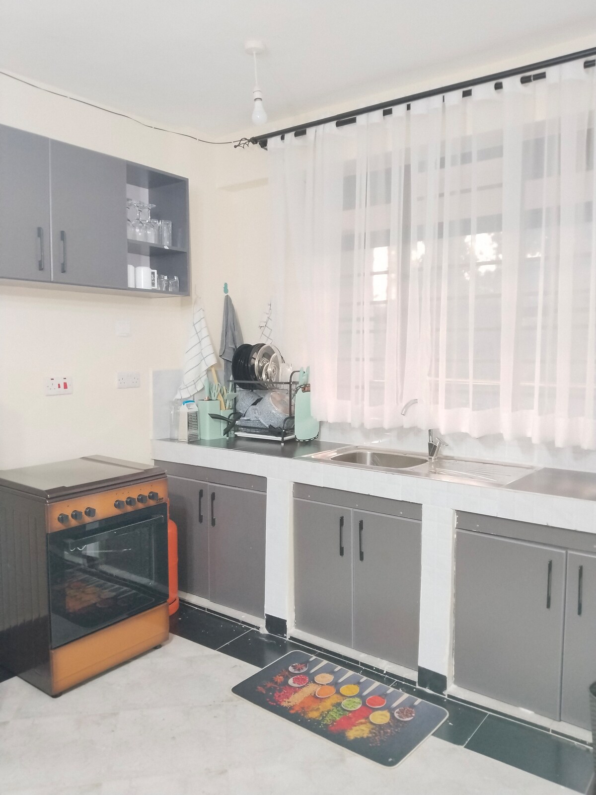 ¿Vas a visitar a tu familia, te encuentras con amigos o viajas por trabajo en el condado de Nyamira o en la zona norte de Kisii? ¡Registro en este espacio listo, moderno, amplio y sereno de Airbnb que satisfará todas tus necesidades mientras estés en el pueblo! El alojamiento está en la carretera Kisii-Nyamira (cerca de Konate y junto a la carretera) en un complejo seguro. Tiene TV, ducha caliente, dormitorio privado, cocina moderna encantadora, sala de estar espaciosa, comedor elegante y mucho más.