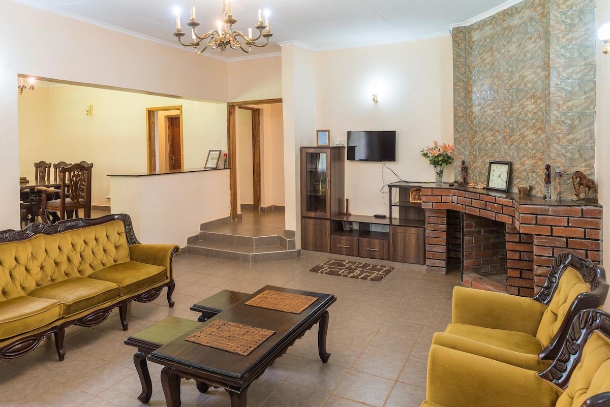 Relájate con toda la familia en este lugar tranquilo para hospedarte. Esta casa de 3 dormitorios, muy bien mantenida, ofrece todos los dormitorios con baño para la máxima comodidad y privacidad, además de un alojamiento para el personal separado (DSQ) para mayor flexibilidad. Ya sea que viajes en familia o en grupo, apreciarás el diseño espacioso y el ambiente cálido y acogedor. Disfrutá de un complejo tranquilo perfecto para que los niños corran o un café tranquilo por la mañana mientras te sumergís en el sol de Nanyuki y el aire fresco.