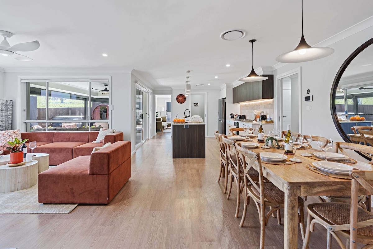 Esta encantadora y bellamente diseñada casa de campo ofrece una auténtica experiencia de estancia en una granja. ¡Disfruta de vistas espectaculares y puestas de sol junto a la chimenea con una copa de vino en la mano o tal vez a ti y a los niños les gustaría explorar la granja! Cooinda se encuentra a 10 minutos de Orange CBD y está cerca de algunas de las mejores bodegas locales, la recolección de frutas y las hermosas cuevas de Borenore. Aquí encontrarás todo lo que necesitas para relajarte y disfrutar de un fin de semana de vida en el campo.