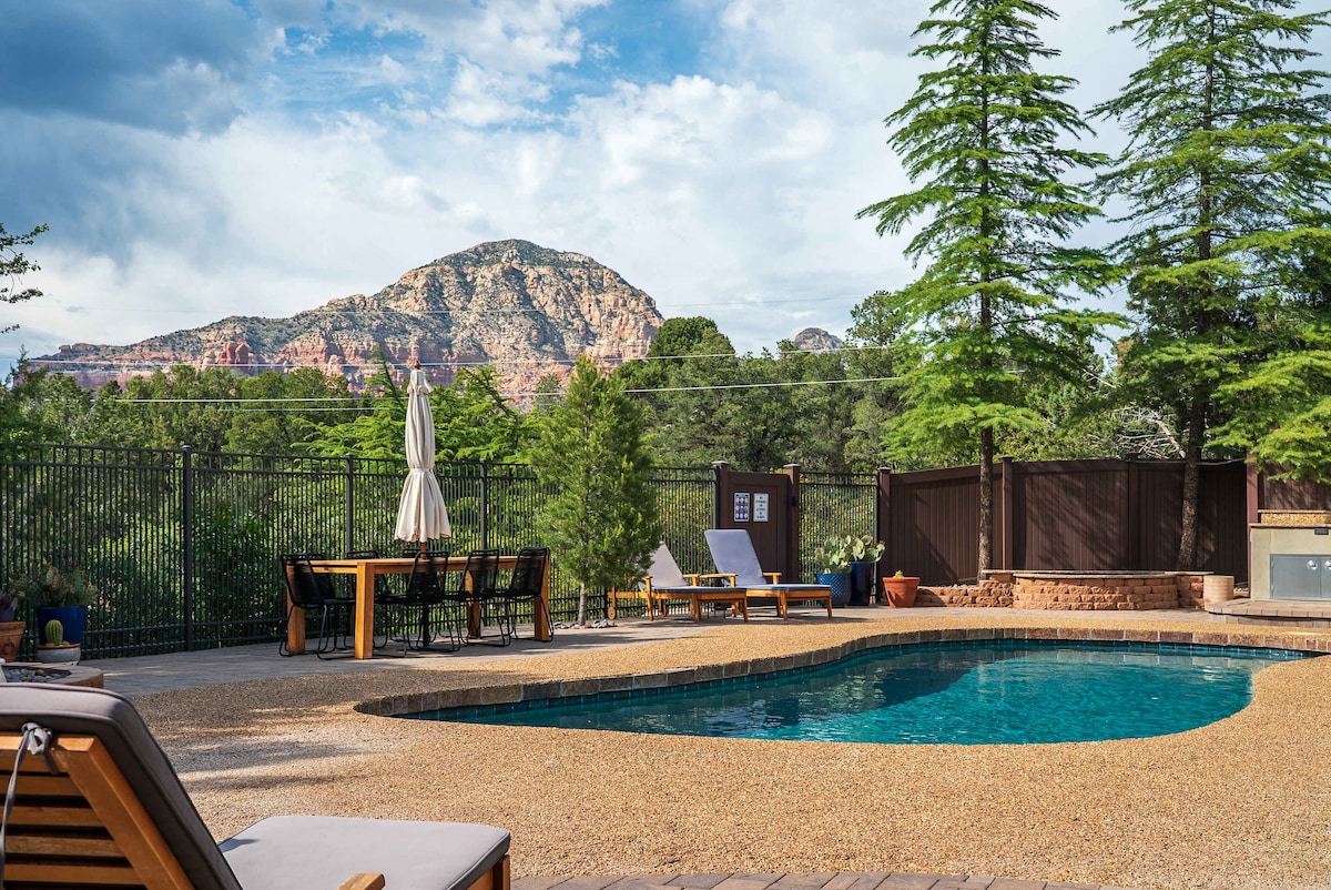 Vistas increíbles en Sedona con un bonito patio trasero y piscina