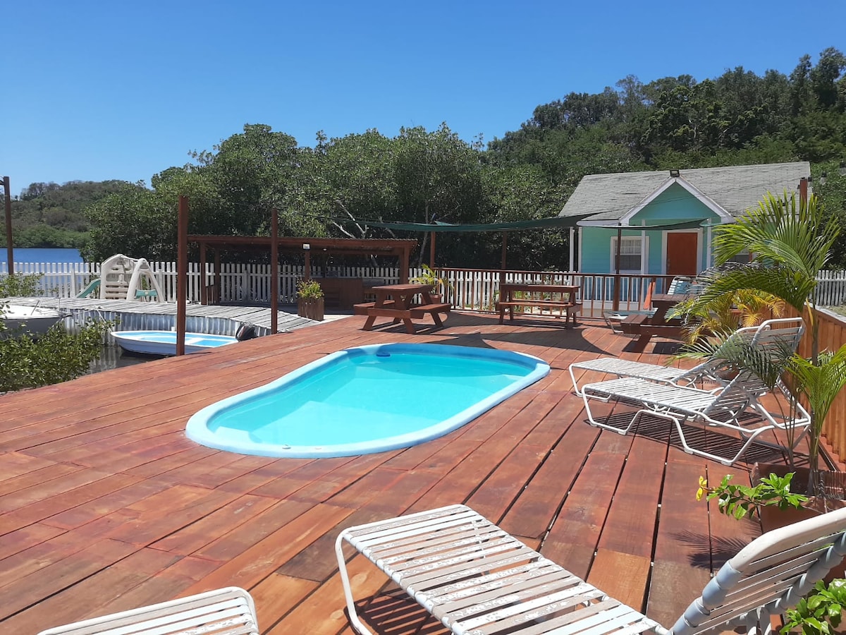 ¿Quieres tranquilidad y paz? ¡Aquí lo tienes! El único tráfico que oirás serán los barcos. Ceiba Tree Casitas se encuentra en primera línea de mar en la comunidad de Punta Blanca. Esta casa de nueva construcción tiene todo lo que necesitas para una escapada increíble, incluyendo kayaks, equipo de esnórquel, una gran terraza, ducha al aire libre y el arrecife a solo 5-10 minutos a remo de la puerta principal. Esta casa totalmente amueblada es perfecta para una pareja o una pequeña familia de hasta 4 personas. No permitimos estancias de más de 28 días.