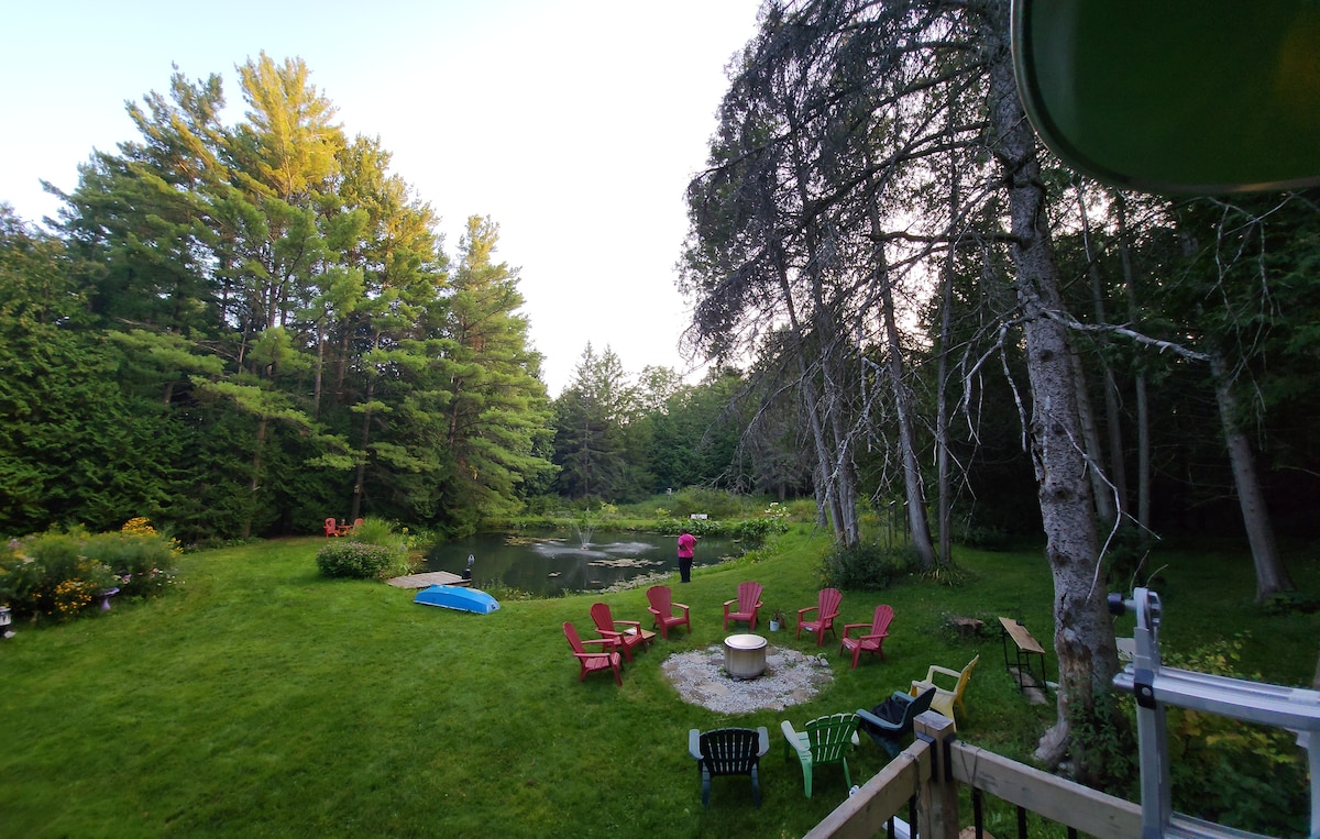 Escondida entre las colinas de Reaboro Ontario, esta cabaña de madera pionera de más de 175 años de antigüedad ha vuelto a la vida con la comodidad de todas las nuevas comodidades modernas, manteniendo el rico carácter histórico de su pasado. La casa de campo de la cabaña fue fabricada en 1847, antes de que Canadá fuera un país. Con tu pareja, familia o amigos, ven cómodamente al fuego, sumérgete en el jacuzzi y disfruta nadando en el estanque alimentado por manantiales. Se proporcionan juegos de mesa y películas para tu entretenimiento.