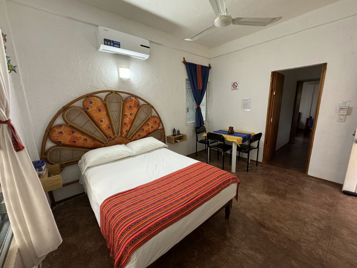 Hermosa casita con capacidad hasta para 5 personas con vista a bello jardín, cuenta con baño privado con todos los servicios, y además es muy céntrico. Nos encontramos en un barrio muy tranquilo, a tan sólo 15 minutos caminando del templo de Santo Domingo y del andador turístico. Beautiful "Casita" for up to 5 people overloking beautiful garden, it has private bath with hot water 24/7. We are located in a quiet neibhborhood just 10 minutes walking from downtown. Very close to the Santo Domingo