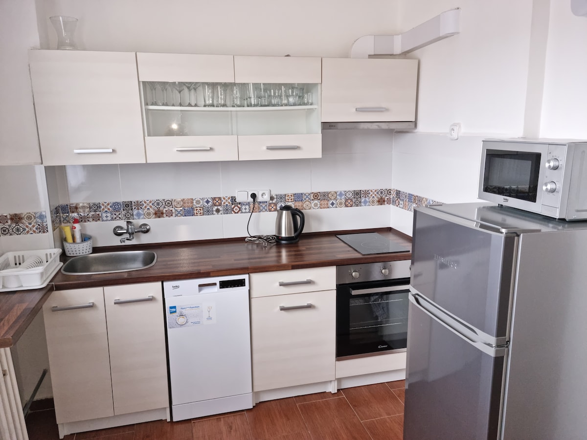 Nuestro departamento es ideal para 2 personas, también es adecuado para 4 personas. Está totalmente equipado. Todavía hay algo para ti en la nevera :-) Hay una cama doble en el dormitorio y una cama doble adicional (sofá cama) en la cocina. Está en el tercer piso en una casa de estilo artístico muy agradable.
