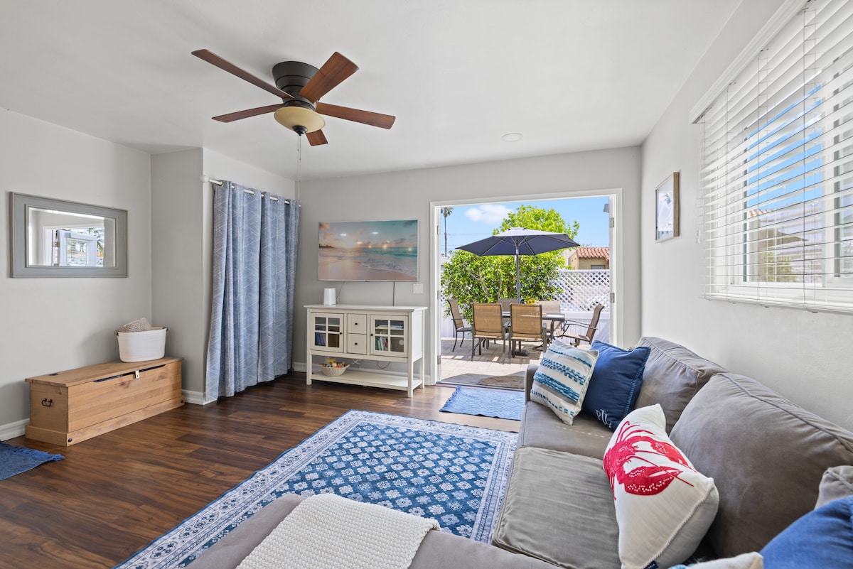 Renovated charming beach cottage just 2 blocks from the beach in Ocean Beach, California! French doors that open to private paver patio to enjoy the outdoors. Short Walk to beaches, great restaurants, bars, shops & all OB has to offer ! Brand New Heating and Air conditioning unit 1 car Garage parking onsite with laundry Fast Wifi Smart tv New memory foam mattresses on queen bed in private bedroom & queen sofa sleeper. Very comfortable! Come stay at the best beach in San Diego!