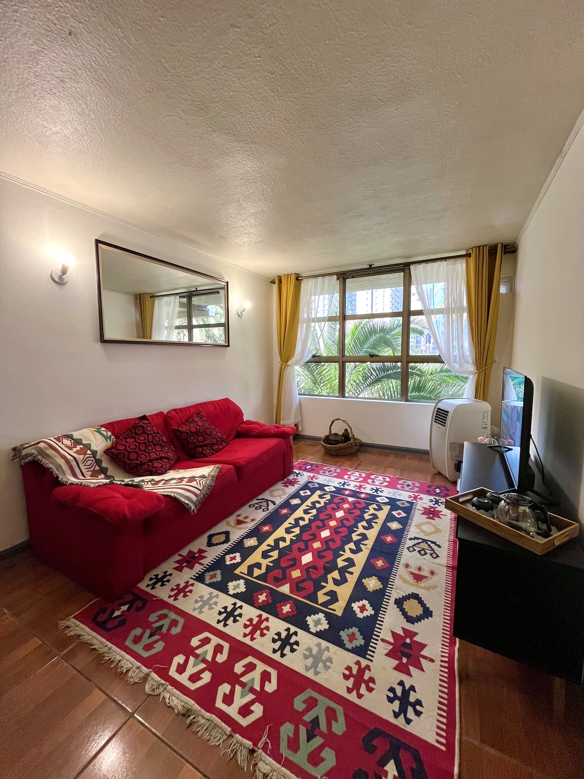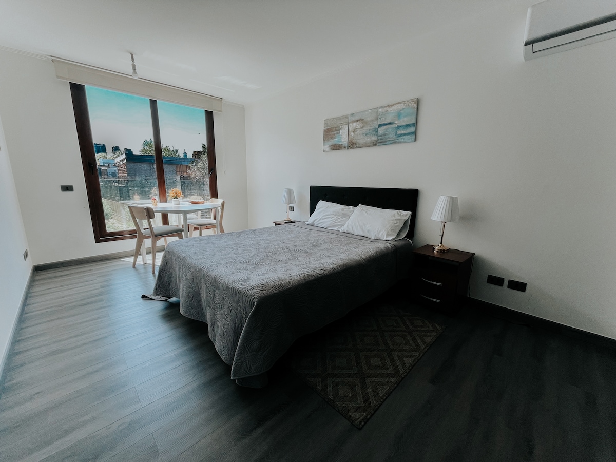 Moderno y acogedor departamento con aire acondicionado en el corazón de Santiago. A pasos del metro y del Centro Histórico, rodeado de museos, mercados y restaurantes. Cama king, cocina equipada, balcón y wifi rápido, ideal para viajes o estadías largas. Edificio seguro con conserje 24/7. Atención personalizada, check-in flexible y recomendaciones locales para que disfrutes la ciudad como un residente, con comodidad y tranquilidad.