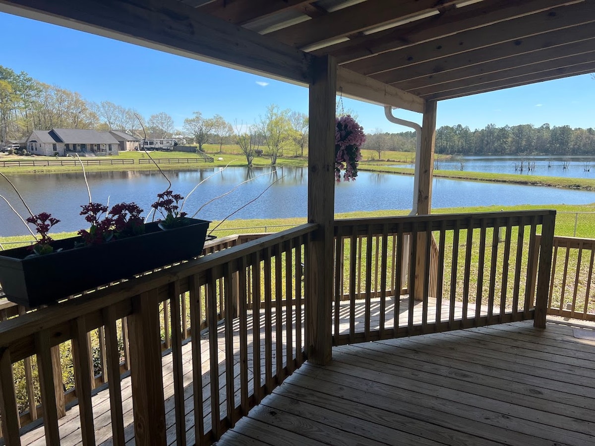 Venga y relájese en nuestro acogedor hogar de 2 dormitorios/1 baño en el lago. Dos canoas, un bote de pedales y una fogata para tu disfrute, una conexión de RV de 30 amperios, patio cubierto con iluminación de cuerda, jacuzzi, muebles de patio, una parrilla de barbacoa en el parque, todo lo que necesitas para cocinar y servir hasta 10 personas, lavarropas, secarropas, TV inteligente, Internet y cocina moderna.