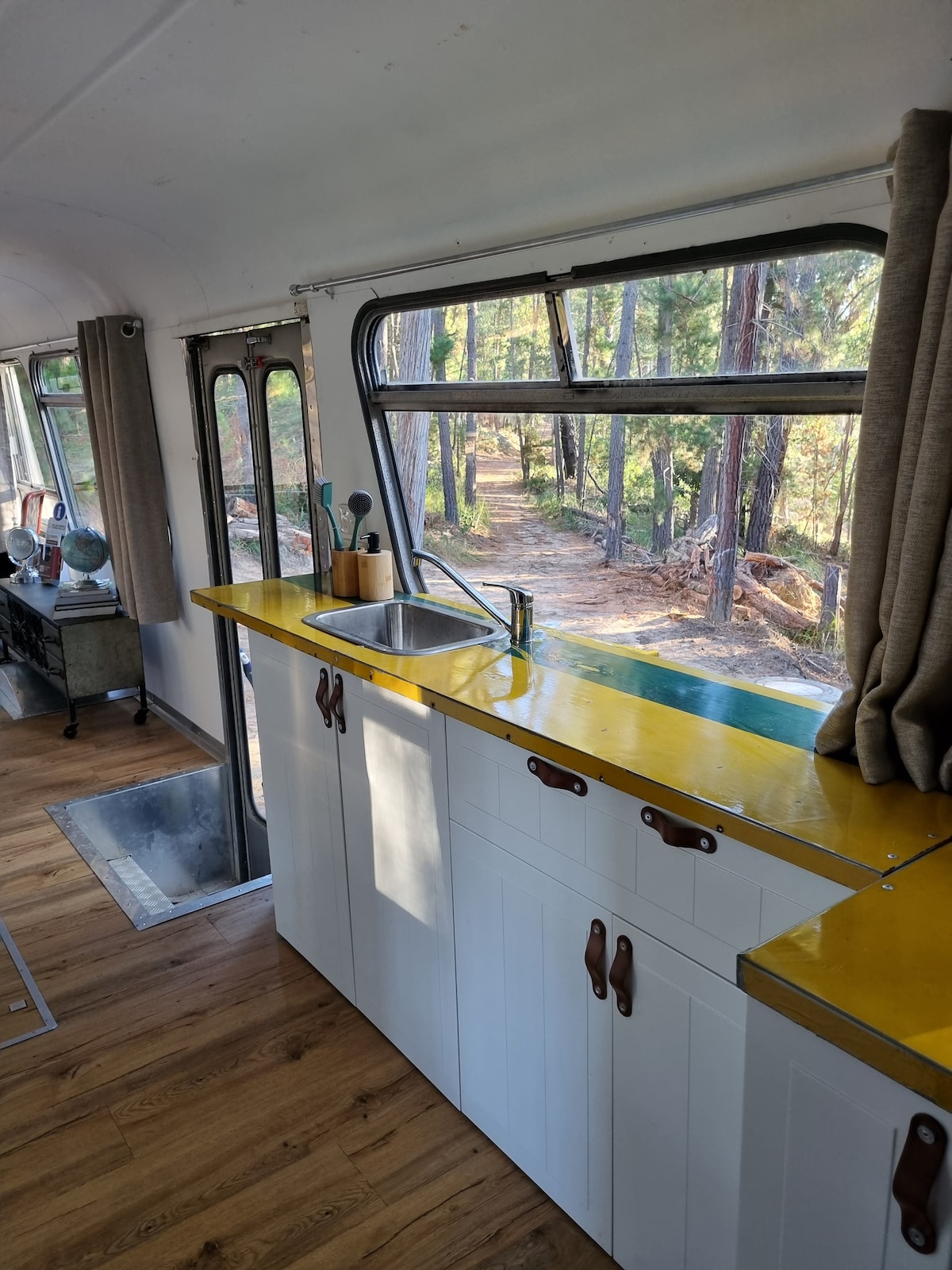 ¡CAMA TIPO KING con vistas al bosque! En el borde del bosque y a solo 6 minutos en coche de la espectacular costa y las playas. Amplio (+11 m de largo), supercómodo, independiente, privado, tranquilo, funcional y memorable. El «Lucky Duck Bus» es un autobús escolar Mercedes de 1977 elegantemente renovado. ¡Conecta con la naturaleza, estilo casa pequeña! Incluye zona al aire libre con ducha caliente privada/baño en el suelo con vistas al bosque, barbacoa de gas y placa de inducción. Wifi rápido. *MÁX. 2 PERSONAS *NO SE ADMITEN MASCOTAS *NO SE PERMITEN FOGATAS
