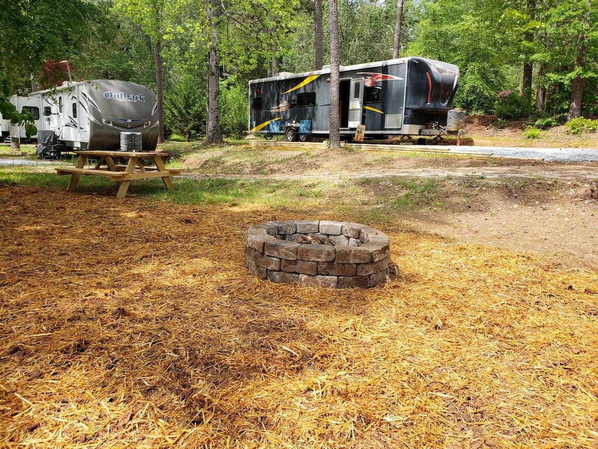 Welcome to glamping with a side of adventure! Nice big camper with coffee, an indoor electric fireplace and games. We’re just 10 minutes from Lake Jocassee, 15 from Lake Keowee and 35 to Clemson. Spend your days chasing waterfalls and hiking endless trails. Come home to our cozy 2018 Laredo camper with a king bed, queen sofa bed, full sized loft, air mattress, fresh towels, and Wi‑Fi. Camp vibes, comfy touches! Camp vibes, lake days, and zero roughing it! 1pm early check in available for $30