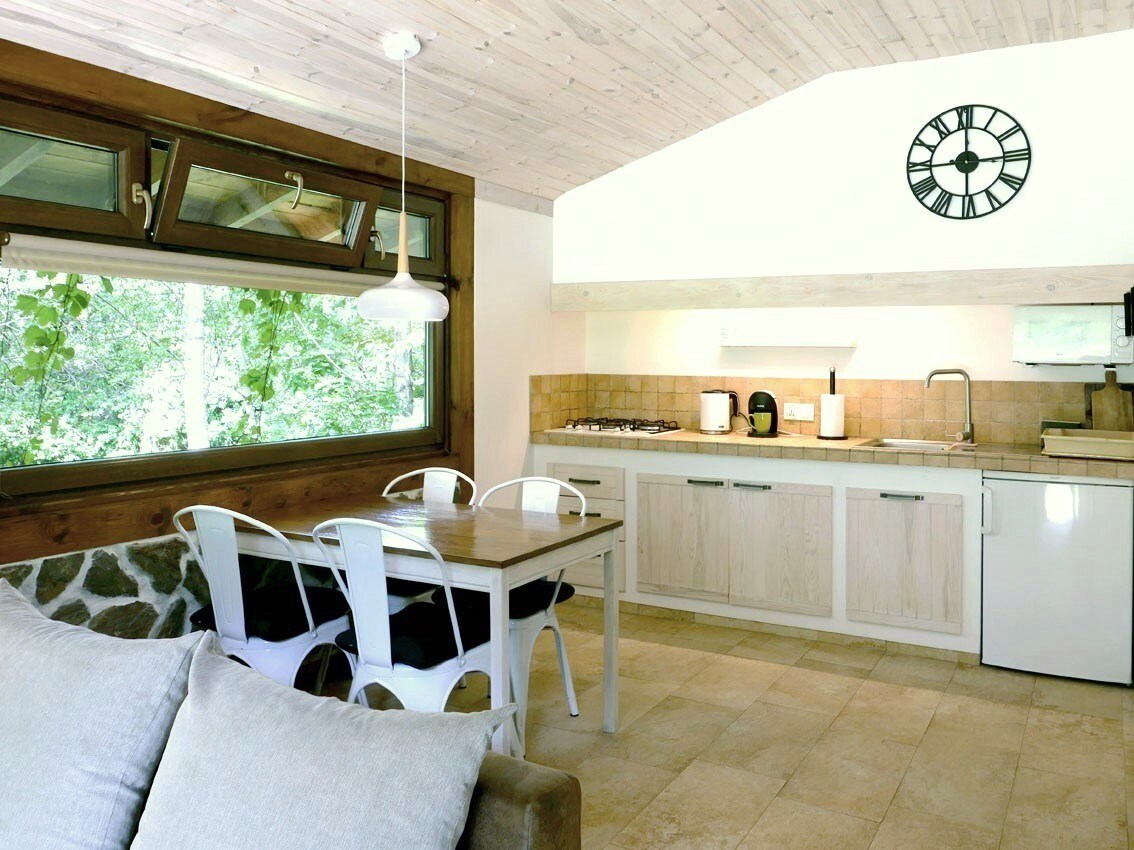 Una casa de campo totalmente equipada está disponible para los huéspedes durante todo el año. Planta baja: salón con chimenea y acceso a la terraza, cocina, baño con ducha. Primera planta: dormitorio sur con balcón y vistas al lago y dormitorio norte con vistas a la colina boscosa y al barranco. En los dormitorios hay camas: 160/200 con posibilidad de separación, 140/200 y 80/200, ropa de cama, toallas. Wi-Fi disponible. En lugar de televisión: hermosas vistas, fuego en la chimenea. En el exterior, un cobertizo con parrilla y tumbonas. Aparcamiento junto a la casa.