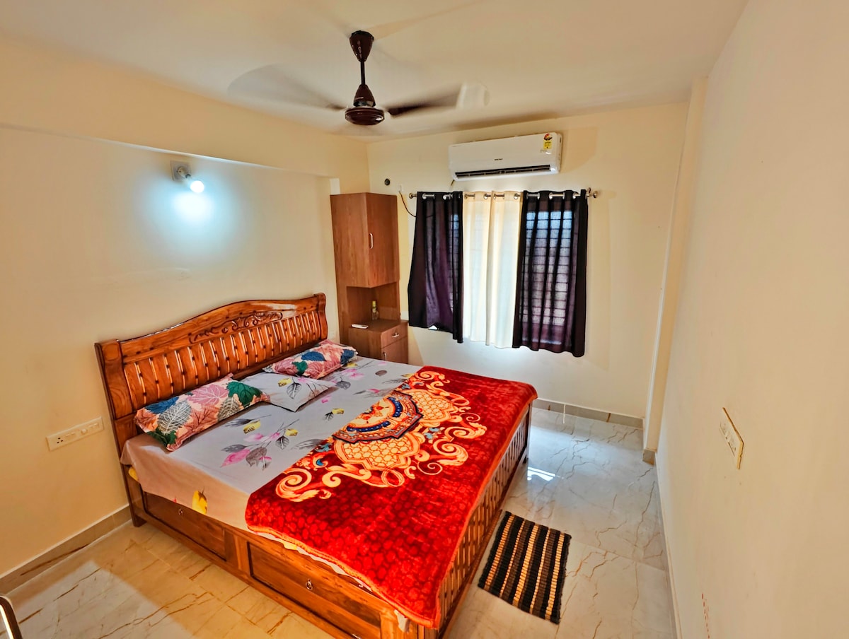 Nuestra propiedad es un apartamento acogedor de 1 BHK, a solo 500 metros a 600 metros de la playa del mar azul de puri. Está ubicado dentro de un hermoso y pacífico centro vacacional. El templo Lord Jagannath está a 3,5 km, el templo Sun en Konark está a 38 km de nuestra propiedad. Nuestro lugar tiene una cocina funcional, lo que significa que puedes cocinar cualquier cosa y lavar tu ropa (lavadora automática) desde aquí(wifi gratuito) y relajarte viendo Ott. el cuidador te ayudará a reservar un taxi, pedir comidas o comestibles, organizar el alquiler de bicicletas o autos .