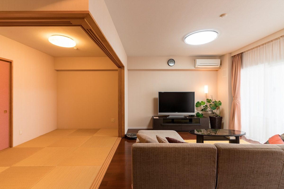 【This location, this room size, this quality, this price.】 No other guests. 3bed rooms in Ryukyu Modern Suite room. Why don't you relax in the living room with your family or group? We have prepared items that will add color to your trip, such as Ryukyu Tatami mats, NIHON BED for the imperial household! We have expressed the world of "Ryukyu Modern Inn Ryudan". *Please use coin-operated parking lots, of which there are many nearby. 200m Kencho-mae station of the train 200m Kokusai Street