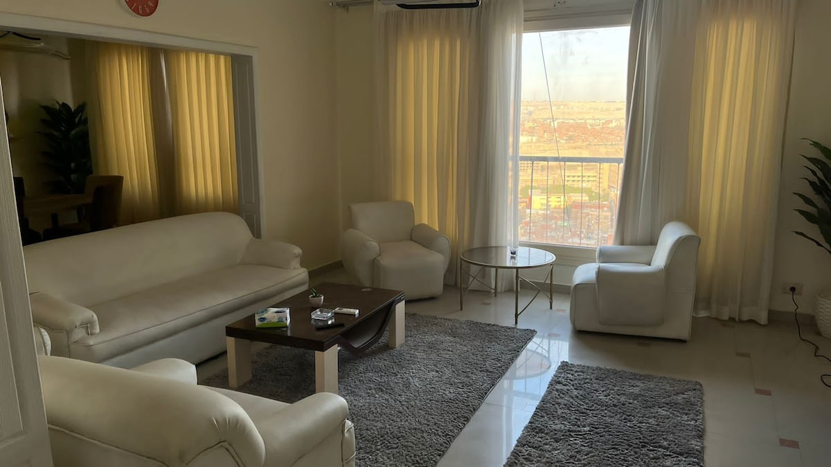 Crea recuerdos en este lugar único y familiar. En una posición muy céntrica en el corazón del cairo con las mejores vistas de la ciudad. Consiste en: . 3 dormitorios . 3 inodoros con una bañera de hidromasaje en la habitación principal. . aire acondicionado en todas las habitaciones (5 en total) . Cocina abierta totalmente equipada . Amplia sala de estar y habitación de invitados . Un balcón muy espacioso.