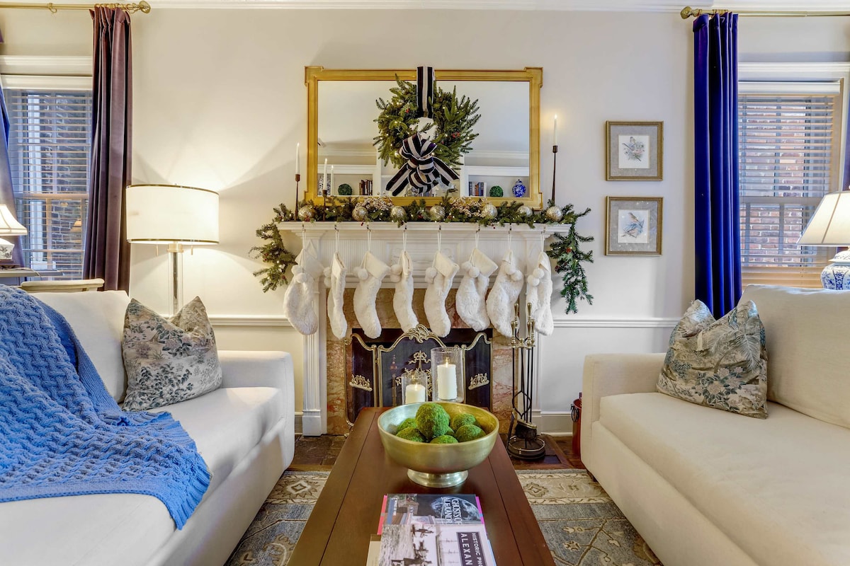 Steps to King St: Fire place + Black out curtains + Kitchen w/ all amenities! Whether you’re traveling for business or pleasure, you’ll be delighted to know you are staying in the Heart of Old Town Alexandria, VA. Merely steps to top attractions. Indulge in the city's best coffee & ice cream shops, visit local artists, unique small businesses, 5 ★ restaurants, & creatively curated bars. And then unwind in a custom designed modern luxury apt, stocked kitchen, an oceanic shower experience.