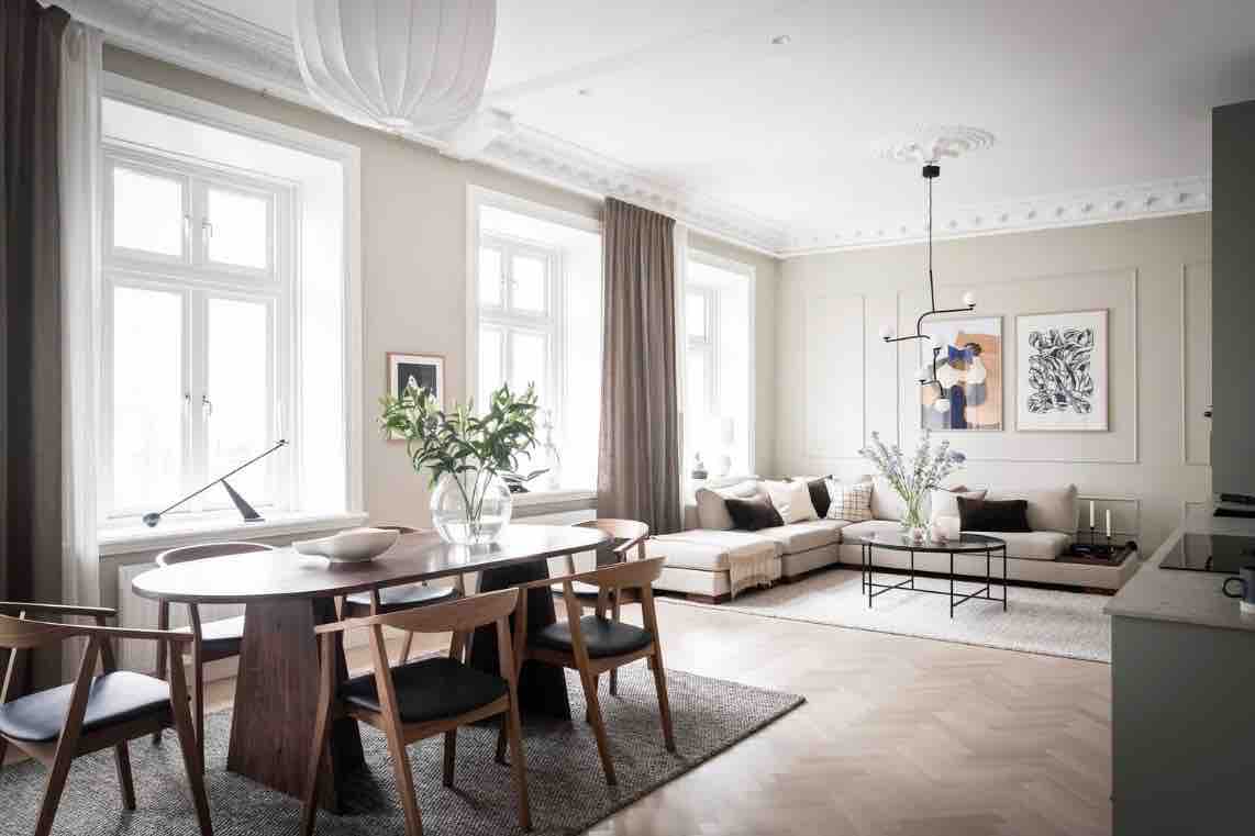 Bienvenido a este apartamento bellamente diseñado en Vasagatan en el corazón de Gotemburgo. Ubicado en un edificio histórico de 1895, este apartamento de nueva construcción combina a la perfección la arquitectura clásica con el confort contemporáneo. Los interiores espaciosos y llenos de luz proporcionan un refugio acogedor para parejas, viajeros solos o familias con uno o dos hijos, gracias al cómodo sofá cama plegable en la sala de estar.