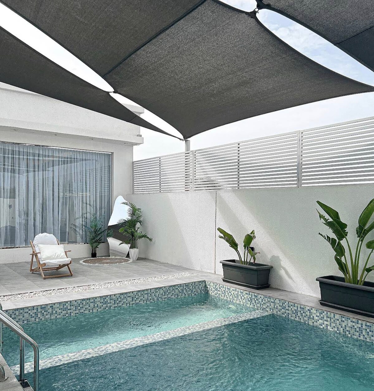 Un complejo hotelero dedicado a las parejas para vivir un ambiente único diseñado en un estilo único y moderno para adaptarse a tu relajación en diferentes ambientes. Cuenta con piscina privada con sala de estar de doble altura y vista a la piscina y sala de estar desde el dormitorio principal. La piscina tiene control de temperatura. Lugar tranquilo y seguro. A 40 km del aeropuerto de Mascate. A 35 minutos del aeropuerto.