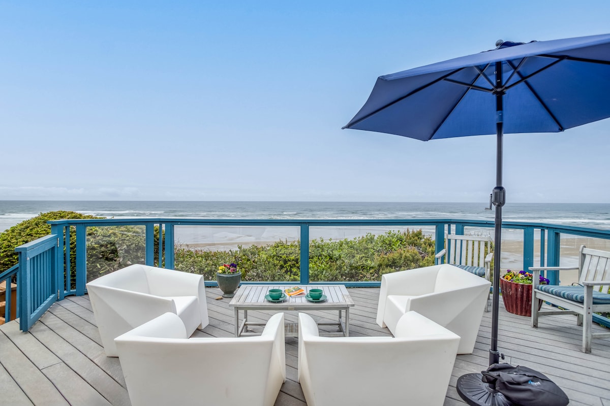 Esta es una espaciosa y preciosa casa frente a la playa con vistas increíbles desde todas las ventanas. Sales de la gran terraza y llegas a la playa de arena. Al oeste está el océano Pacífico y al sureste está la bahía de Alsea. La casa está convenientemente ubicada entre Florencia y Newport, ¡una ubicación perfecta para experimentar la pura alegría del océano! Encantadora y fresca, esta casa está superlimpia y muy bien amueblada.