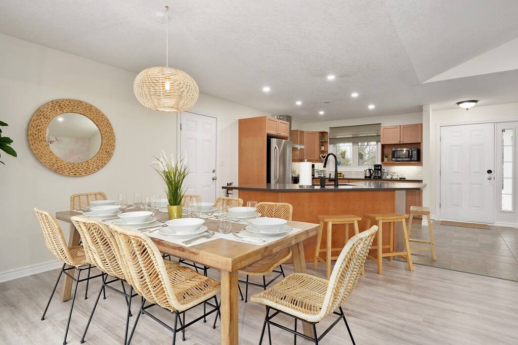 Casa Mariposa es una casa de campo apta para perros en Grand Bend, ¡perfecta para toda la familia! Cerca de la vibrante ciudad de Grand Bend, Port Franks, Ipperwash y las playas de Pinery Park, es el mejor lugar para una escapada. Cuenta con un gran patio trasero con jacuzzi, sauna, minigolf, terraza amueblada, barbacoa, cama elástica, parque infantil y una emocionante chimenea. En el interior, disfruta de un cine, una mesa de billar, futbolín, Pac-Man, televisores inteligentes y una colección de juegos de mesa, ¡diversión sin fin para todos!
