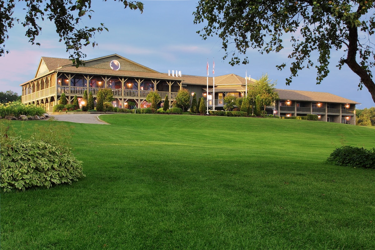 Eganridge Resort, Golf Club & Spa ofrece alojamientos de lujo en una finca histórica con vistas al lago Sturgeon en los lagos Kawartha. Golf en el lugar, spa de servicio completo, centro de conferencias con hermosas salas de reuniones. Frente al mar privado. Teatro cercano, senderismo, senderismo, compras, compras, paseos en barco, pesca.