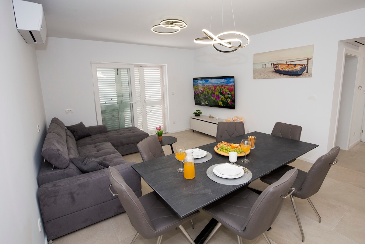 I am renting a spacious apartment located just 10 meters away from a sandy beach. The apartment is ideal for a family of 4, 2 couples ( an apartment has 2 bathrooms) or a couple ( in which case they can use a living room). The house itself is close to Omiš and Split.