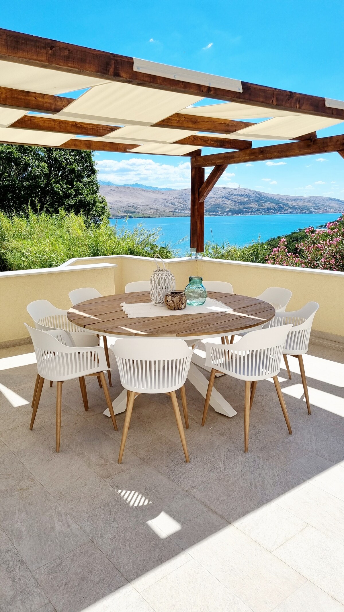 Disfruta de la casa cómoda, tranquila y decorada con imaginación de 3 dormitorios en el mar con una playa privada. La sombra de los pinos, las impresionantes vistas de la isla de Pag y las comidas en las terrazas sobre el mar harán que tus vacaciones sean inolvidables.