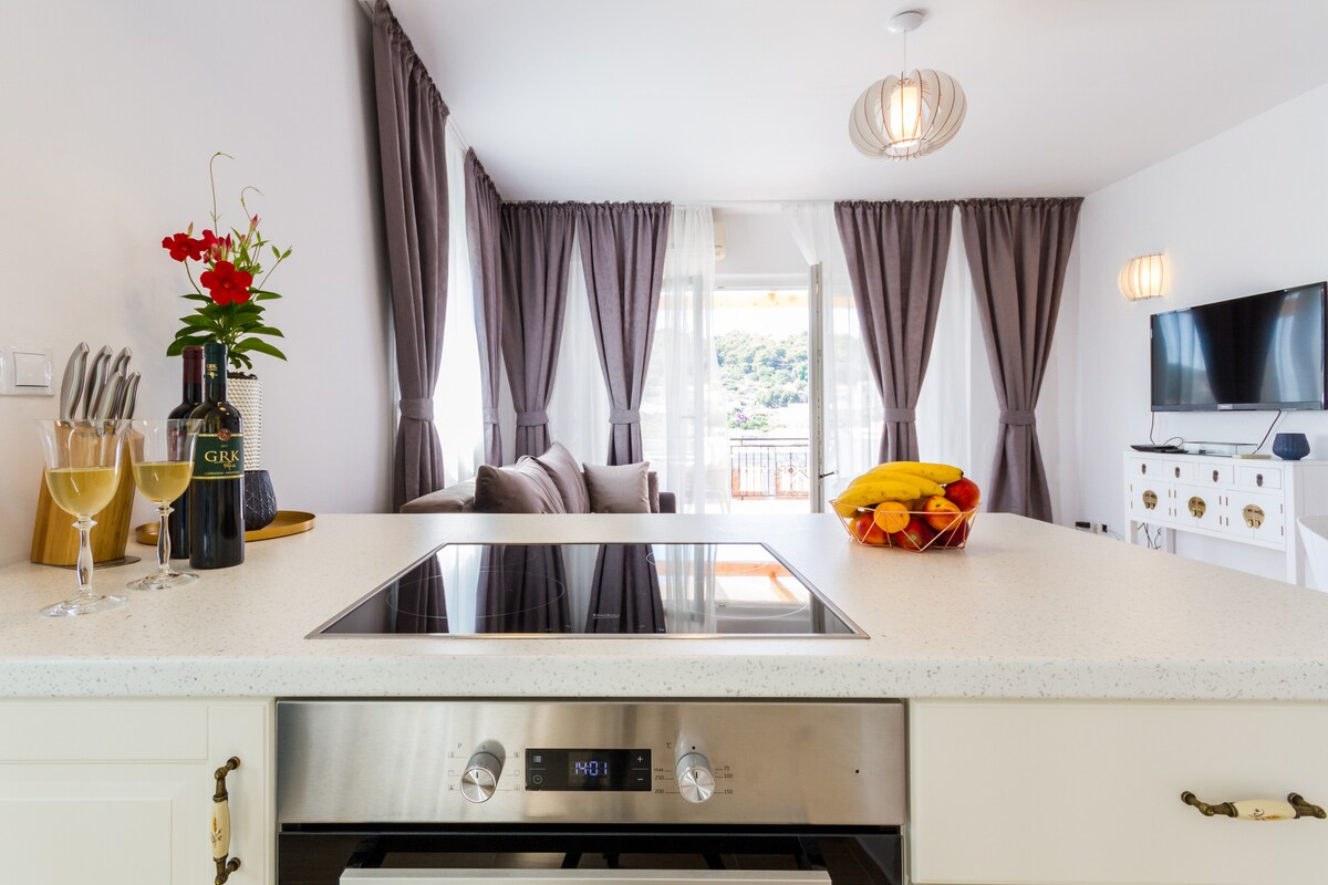 ¡NUEVO! VISTAS A KORČULA Apartamento entero con una increíble terraza privada con vistas espectaculares del casco antiguo de Korcula, otras islas cercanas y la mágica noche estrellada. Apartamento completamente renovado y recién amueblado, se encuentra a diez minutos a pie del casco antiguo de Korcula. El espacioso apartamento está situado en el segundo piso de una casa familiar donde tendrás una entrada independiente que garantiza una privacidad total.