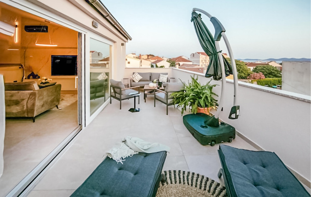 Luxury Seafront Penthouse with Rooftop Terrace and breathtaking 360 panoramic sea view, jacuzzi, bar and sunbathing area, in the heart of Murter. Spread on two floors, consists of spacious executive suite with balcony and a Rooftop Terrace(additional booking needed) above. Everything is within walking distance like finest local restaurants. Marina at your doorstep and Hramina bay archipelago in the palm of your hand. Perfect getaway for two. 7 minutes drive from Garden Tisno. Enjoy the sunset!