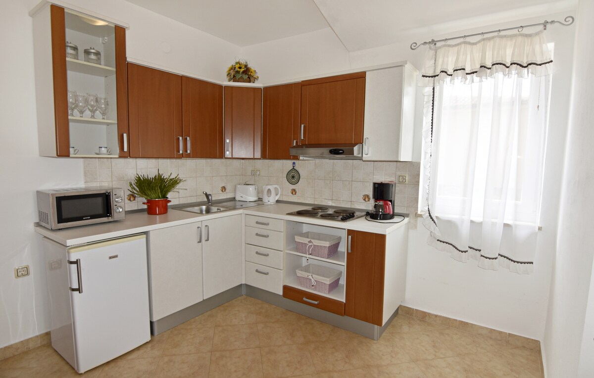 Apartman Ines in Červar-Porat offers a recently renovated apartment with two bedrooms and a living room. The property features air-conditioning, barbecue, a terrace, balcony, and free WiFi. Guests can enjoy a fully equipped kitchen with a coffee machine, microwave, and oven. Additional amenities include a washing machine, dining table, sofa bed, and free on-site parking. Located 61 km from Pula Airport, the apartment is a 5-minute walk from Červar Porat Beach.