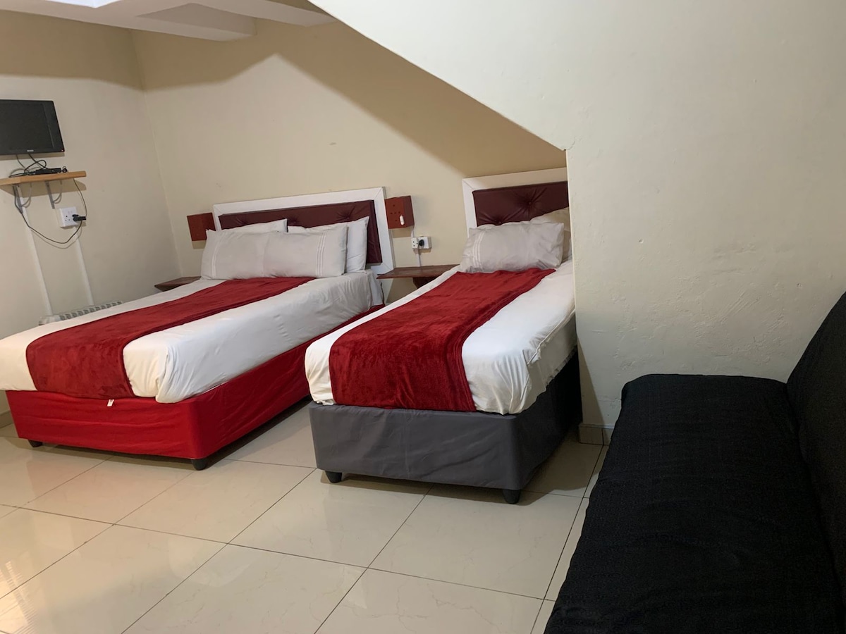 53 on Delville is a cosmopolitan, sustainable and fully functional apartment conveniently located 2 km's away from the CBD, 600m away from a popular shopping complex and a walking distance to local gyms. The apartment features a fully equipped kitchen with a washing machine and en suite bedroom. Situated close to popular restaurants and the CBD. The establishment is safe and secure with electric fencing with ample parking.