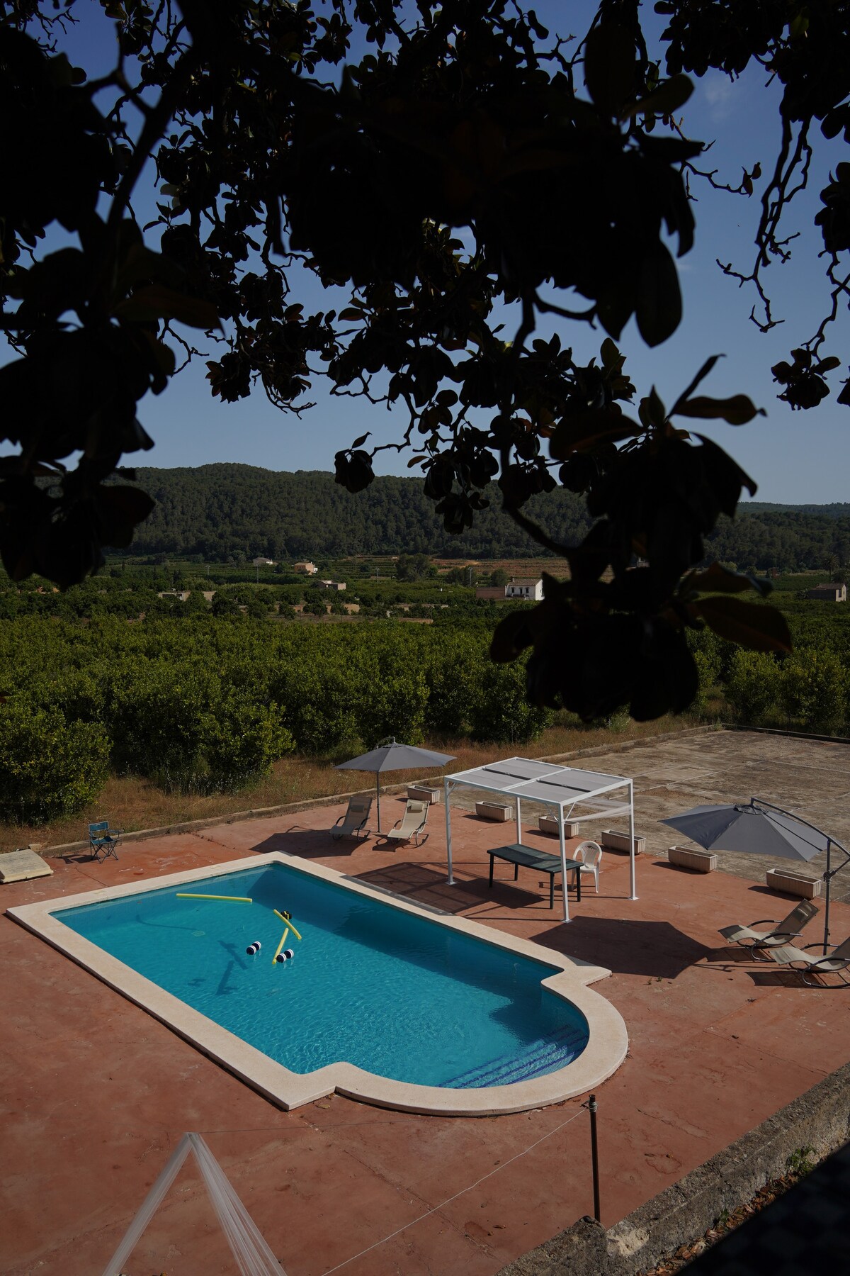 Espectaculares vistas y tranquilidad. Preciosa casa de campo tradicional, renovada con todas las comodidades y con vistas al Parque Natural del Valle de la Murta. La finca de 2 hectáreas de naranjos trepa a través de terrazas hasta el pinar de la montaña, y cuenta con una enorme piscina privada encalada. La casa es un remanso de paz con las mejores temperaturas durante todo el año, con preciosos atardeceres y a solo 5 minutos en coche de los servicios del pueblo, 20 de la playa y 40 de Valencia.